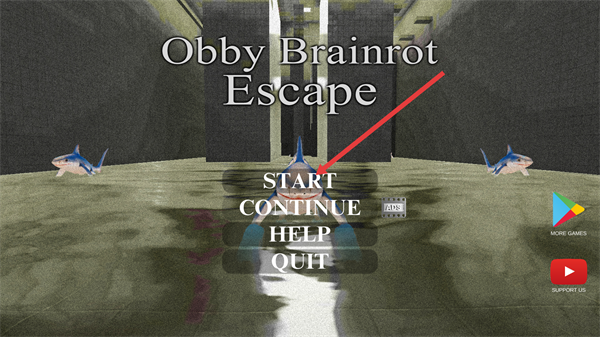 1、進入【Obby-Brainrot-Escape】游戲界面,點擊【START】按鈕可開啟游戲,也可選擇其他功能選項進行對應操作。