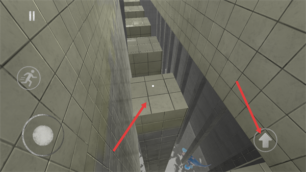 4、在關卡的方塊路徑場景中,繼續通過操控鍵以及右下角的跳躍鍵控制角色移動,沿方塊路徑前進,避開危險區域完成關卡。