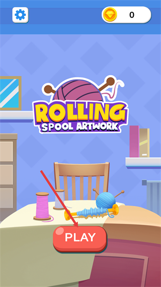 1、進入【ROLLING-SPOOL-ARTWORK】游戲界面,點擊【PLAY】按鈕即可開啟游戲,開始體驗繞線創作玩法。