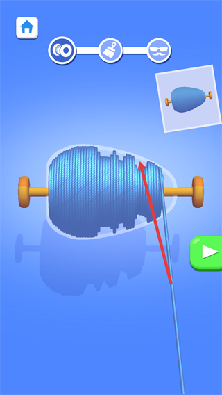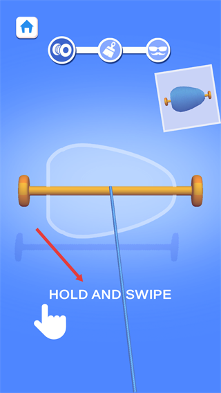 2、游戲中按照【HOLD-AND-SWIPE】提示,長按并滑動操作,控制毛線纏繞在軸上,完成基礎繞線步驟。