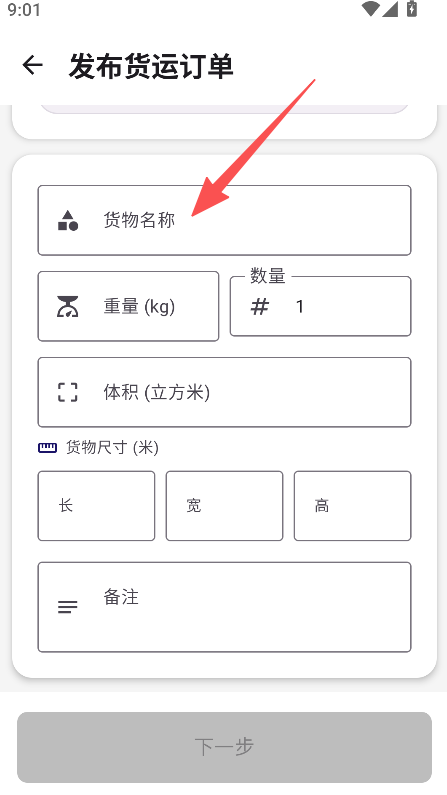 3、進入發布貨運訂單頁面,填寫貨物信息。