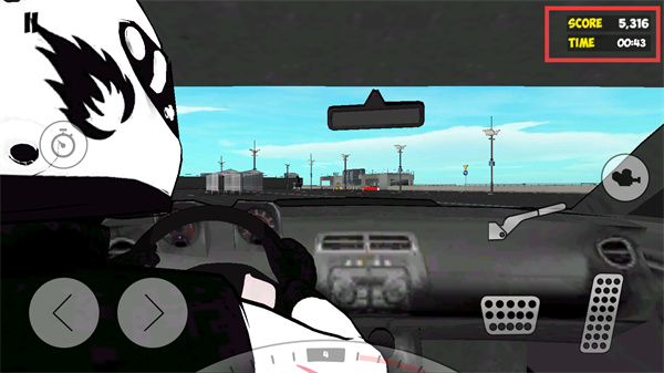 1、操控車輛在賽道行駛,通過左右按鈕調整方向,右側按鍵控制油門,注意右上角倒計時與分數。