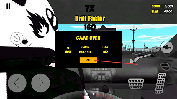 3、時間結束觸發顯示成績,點擊【OK】按鈕結算并返回車庫界面。