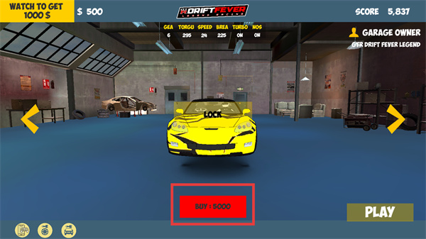 4、在車庫界面消耗金幣解鎖新車輛,點擊【PLAY】按鈕進入關卡。
