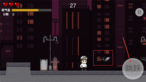 2、進入場景后,點擊【跳躍】按鈕操控角色移動,躲避場景中出現(xiàn)的【蝙蝠】類障礙。