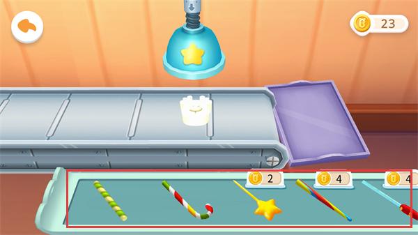 2、選擇底部的裝飾道具(如星星棒),消耗對應金幣將其添加到成型的糖果上,增加裝飾效果。