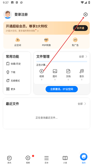 2、在我的頁面右上角點擊設置圖標,進入應用的設置界面。
