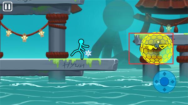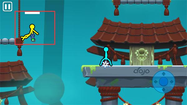 3、利用場景中的繩索等機關,操控火柴人移動、躲避敵方攻擊,同時尋找攻擊時機。